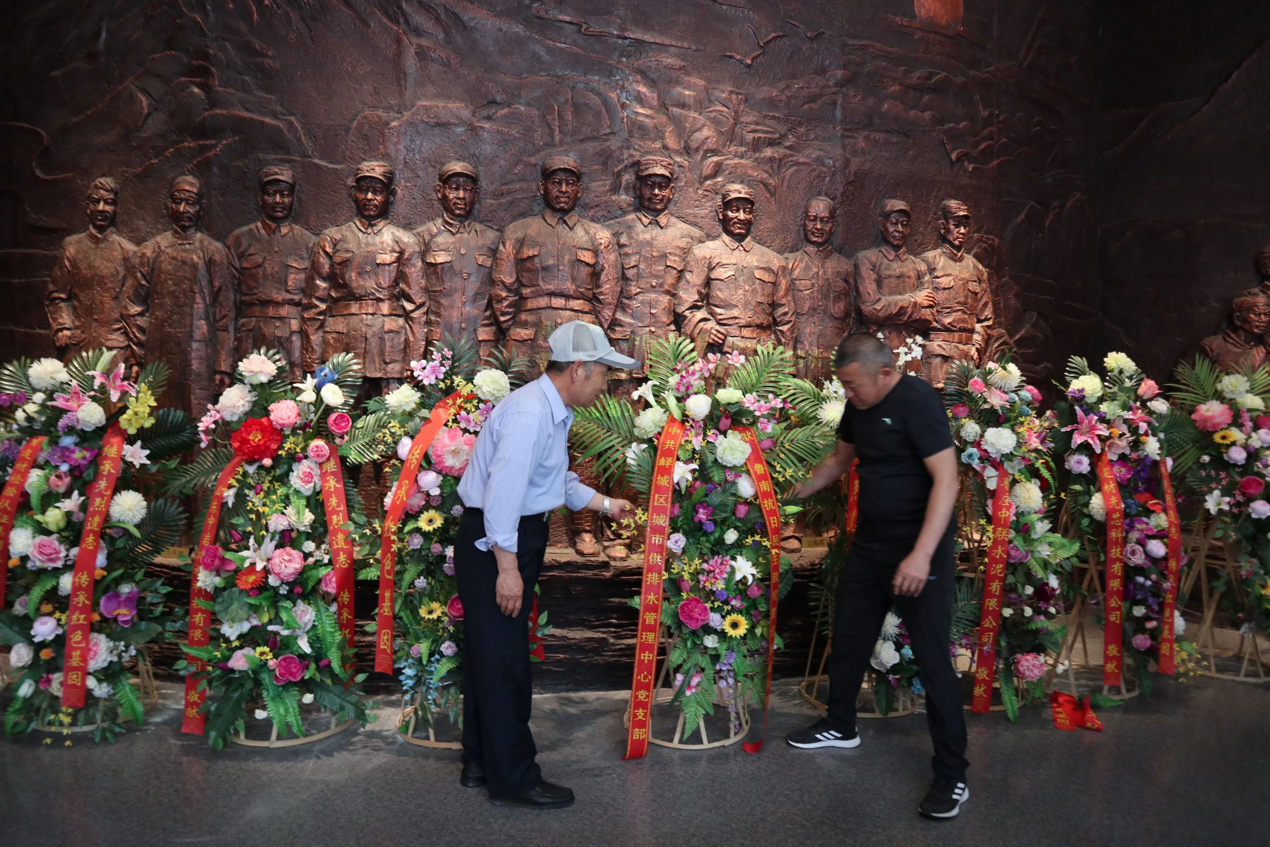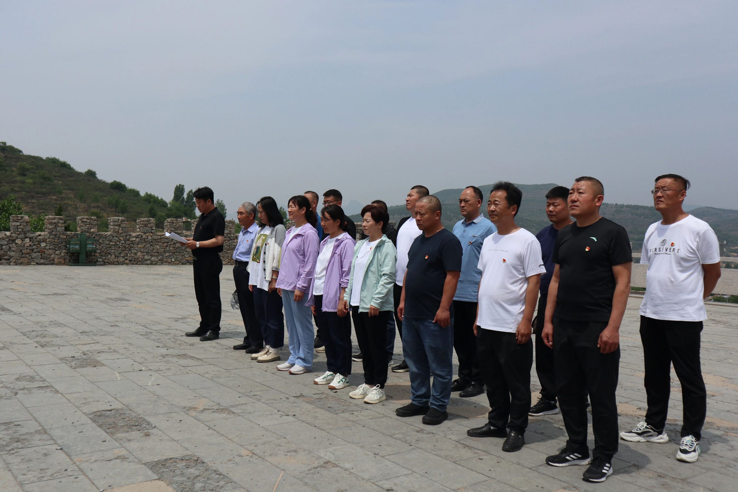 接着乘车前往八路军抱犊崮抗日纪念园,祭奠为民族独立、人民幸福而英勇牺牲的烈士英灵。纪念馆工作人员为我们讲解了115师的战斗历程、八路军挺进鲁南的艰难历程和八路军在峄县的战斗故事。随后来到纪念碑前祭奠烈士,向英雄们默哀、鞠躬、致辞。